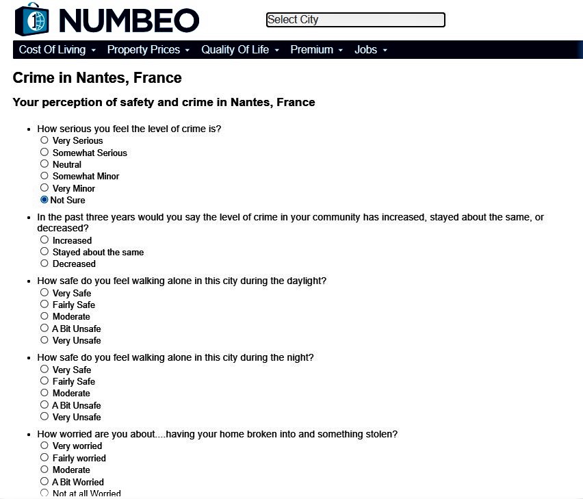 Open sources indicate that Numbeo’s surveys can be completed and modified multiple times by any user. In such cases, the site’s staff do not verify, edit, or correct the submitted information.