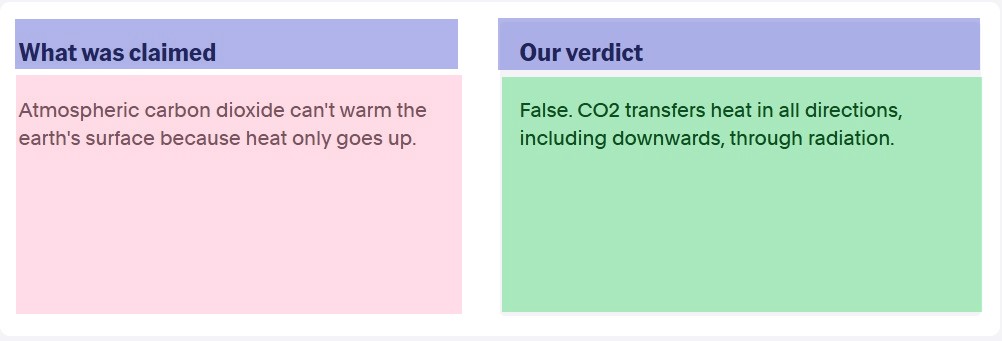 However, experts told AAP FactCheck this is incorrect: CO2 molecules transfer heat in all directions, including towards earth's surface.