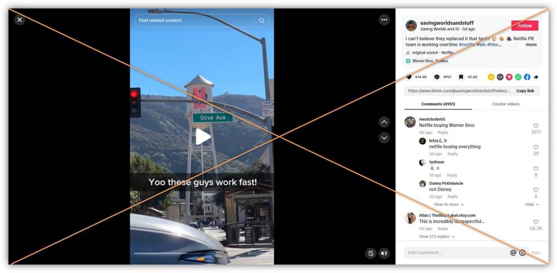 The clip spread after Netflix announced December 5 that it had sealed an agreement to buy the film and television studios from Warner Bros. Discovery, as well as its HBO Max streaming operation (archived here). Three days later, Paramount countered with a hostile, all-cash tender offer to acquire Warner Bros. Discovery in its entirety, including CNN and other cable news properties that would be spun off under the Netflix deal.