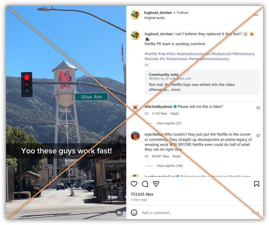 A video spreading across platforms purports to show the Netflix logo painted over the historic water tower at Warner Bros. Studios as the streaming powerhouse seeks to buy the global media giant's film and television studios and streaming services amid a bidding war with Paramount. But the companies said the clip is altered, and the visual effects artist who created the fake confirmed that to AFP.