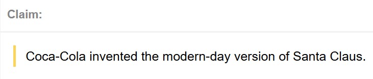 The persistent rumor isn't true. Coca-Cola can — and does — take credit for helping to popularize the modern image of Santa, but the depiction of a round old man clad in red and white predates the company's iconic 1930s advertisements.