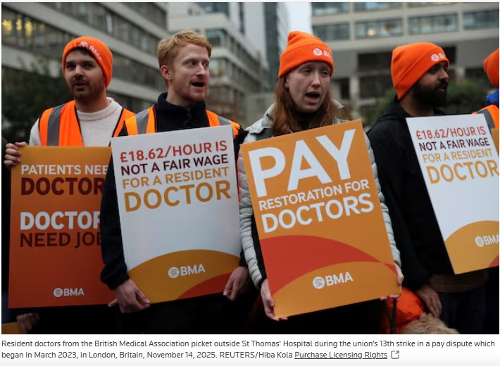 Elkeles said in a Times Radio interview, opens new tab (timecode 01:27) that Britain was facing a “tidal wave” of flu cases and that “if you are coughing and sneezing, but you're not unwell enough to not go to work, then you must wear a mask when you're in public spaces, including on public transport to stop the chances of you giving your virus to somebody else”.