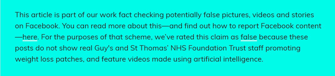 Social media posts that appear to show doctors applying patches then losing weight aren’t real and were made using artificial intelligence (AI).