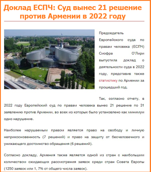 Чтобы получить общее представление, приводим заголовки новостей о состоянии прав человека, прессы и судов в Армении в 2022 году, взятые только из СМИ: