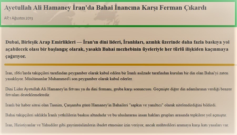 Görüldüğü üzere, İran’daki diğer dinlere ve uluslara ait vatandaşlara uygulanan baskı ve zulmün Bahailere karşı uygulandığıyla ilgili iddialar tamamen gerçeklere dayanmaktadır. İran yönetimi her adımda baskı ve zulümlerini artırdıkça, vatandaşlarının dinsel ve ulusal haklarına saygı göstermedikçe içerideki sorunlarını çözmesi bir hayli zor olacak gibi gözüküyor.