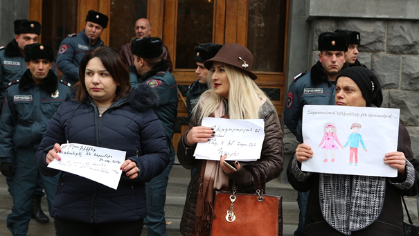 Annelerin eylemlerini Haykuhi Khachatryan koordine ediyor. Geçen yıl endişelerini dile getiren ilk kişi oydu, çünkü herhangi bir komplikasyon olmadan geçen bir hamilelikten sonra hastane ona bebeğinin ölü doğduğunu söylemiş ve bebeği göstermeği redetmişlerdi. Benzer hikayeleri olan yaklaşık 500 kadın şimdi onun etrafında toplandı.