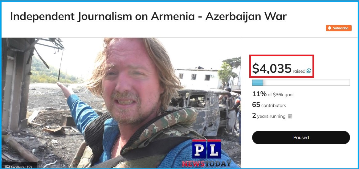 "Fundrazr" platformunda araştırma yaptığımızda "Ermenistan-Azerbaycan Savaşında Bağımsız Gazeteci" mücadelesi için şu ana kadar 4.035 dolar fon toplandığını öğrendik.
