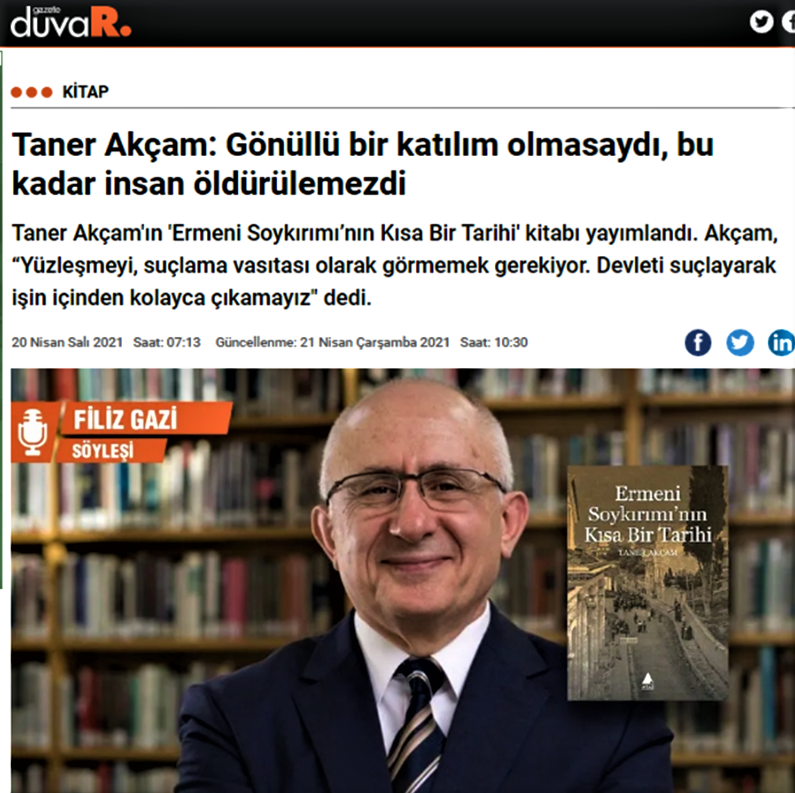 Aynı zamanda Filiz Gazi devamlı sözde Ermeni Soykırımını ateşli bir şekilde savunan Batı'nın uşağı akademisyenlerden Taner Akçam'ın Aras Yayınları tarafından yayımlanan kitabı 'Ermeni Soykırımı’nın Kısa Bir Tarihi' kitabı üzerine de bir söyleşi gerçekleştirmişti.