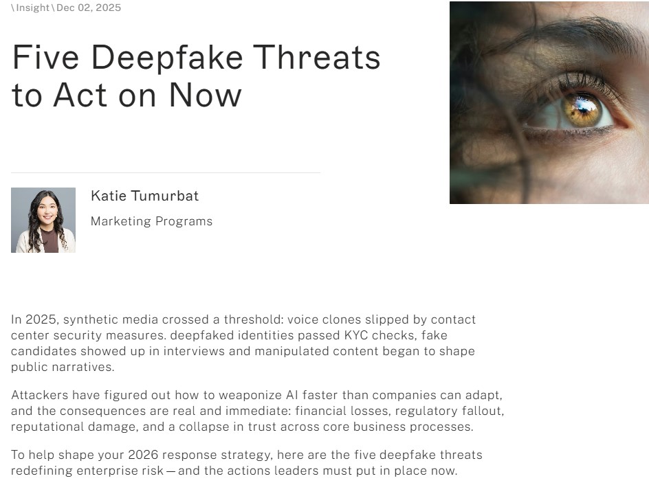 Deepfake teknolojisi uzun süredir gündemde olsa da 2025, yapay zeka destekli içeriklerin "ilginç bir teknolojik gelişme" olmaktan çıkıp günlük iş süreçlerini tehdit eden operasyonel bir riske dönüştüğü yıl oldu. Artık sadece siyasi manipülasyon veya ünlülerin hedef alındığı taciz içerikleri değil, işe alım süreçlerinden bankacılık sistemlerine, çağrı merkezlerinden kurumsal iletişime kadar pek çok alanda sentetik medya kaynaklı dolandırıcılık ve güven erozyonu yaşanıyor.