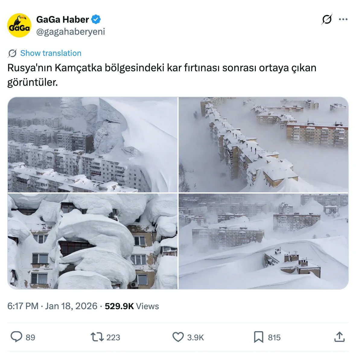 - Rusya’nın Kamçatka bölgesinde şiddetli kar fırtınası nedeniyle acil durum ilan edildi. Kar kalınlığı 3 metreyi aştı.