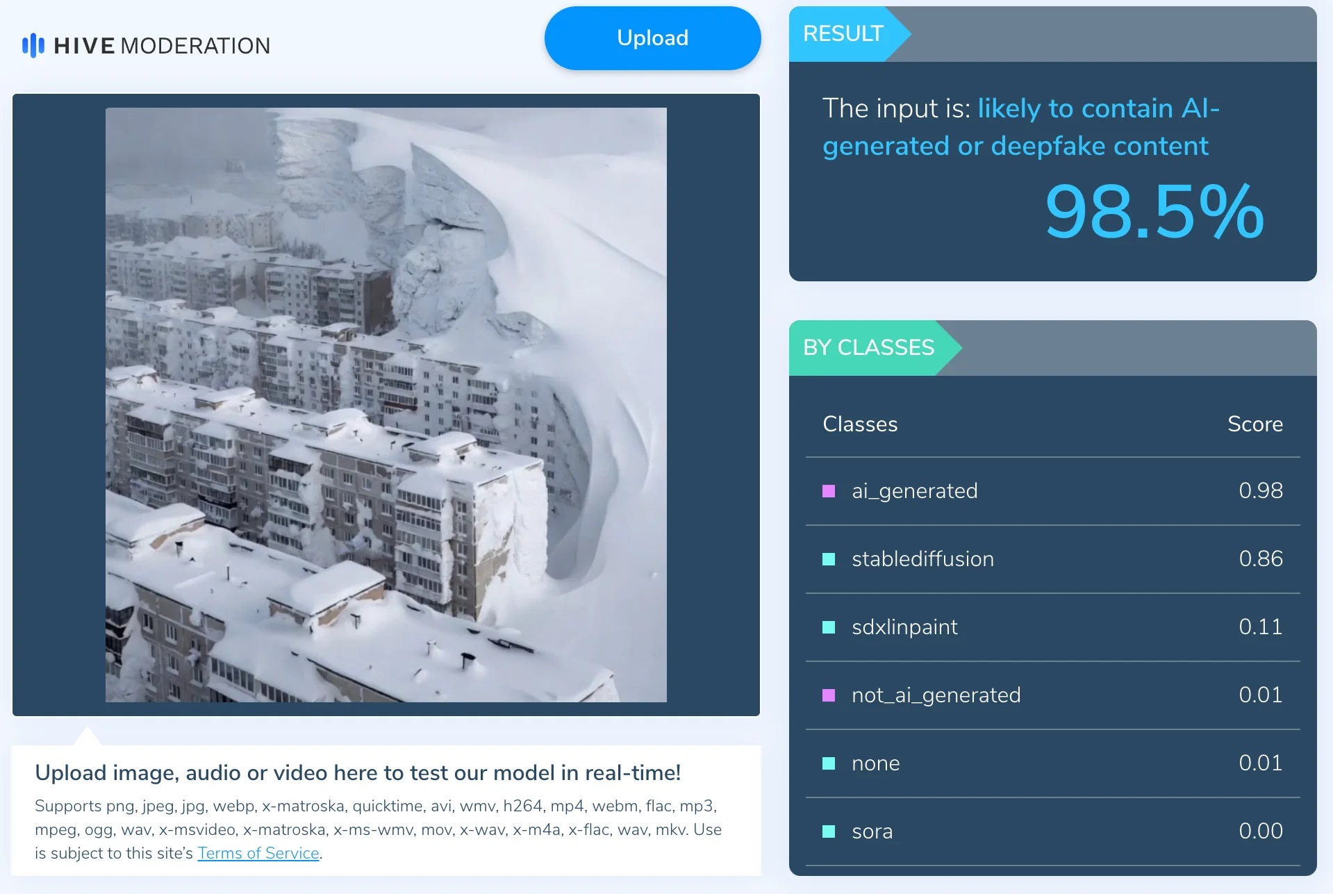 - Yapay zeka tespit aracı Hive Moderation’a göre görüntü %98,5 oranında yapay zeka ürünüdür.