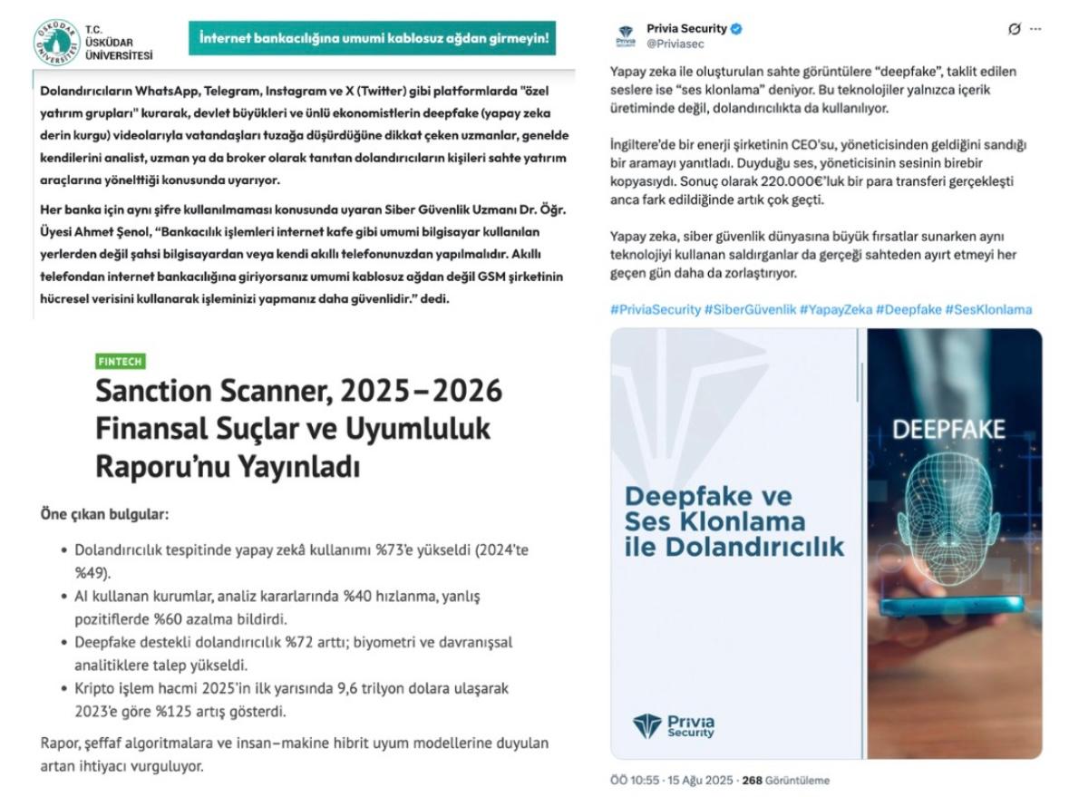-       Deepfake içerikler, manipüle edilmiş grafikler, yapay zeka üretimi gerçek dışı raporlar, sahte ekran görüntüleri kullanılabilir.